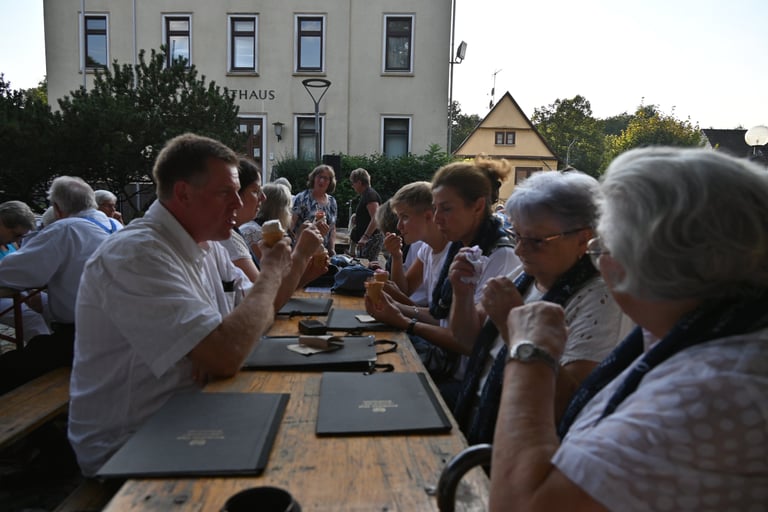 Dies war eine Abendveranstaltung (19:00 bis 21:15 Uhr). Erfreulicherweise hat letztendlich das Wetter mitgespielt. Die Getränke waren gut gekühlt aber Speisen suchte man vergeblich. Schade eigentlich. Hätte sich wohl gelohnt.